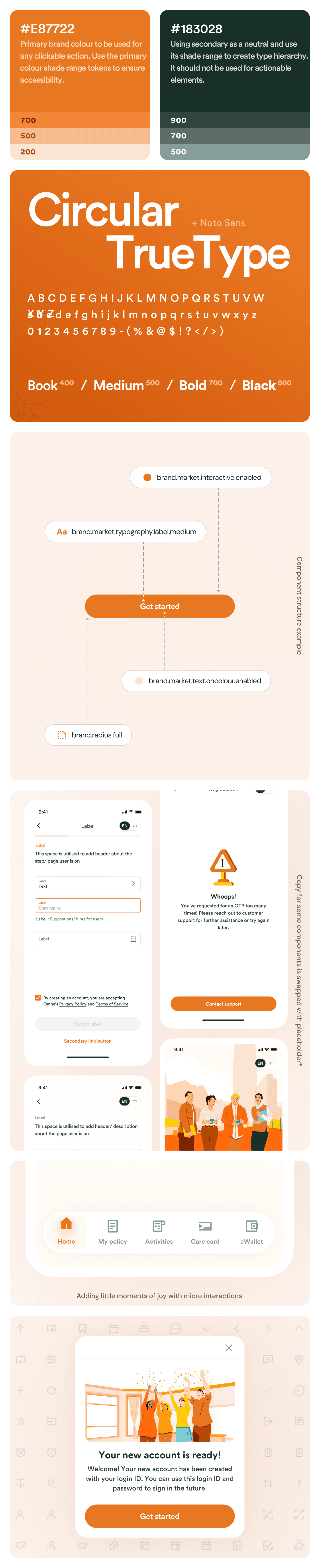 Different markets uses different fonts. Matching the x height and font weight to ensure that the system switch from one market to another doesn’t impact the visual hierarchy - the details with which the design system is built, is the highlight of this story.