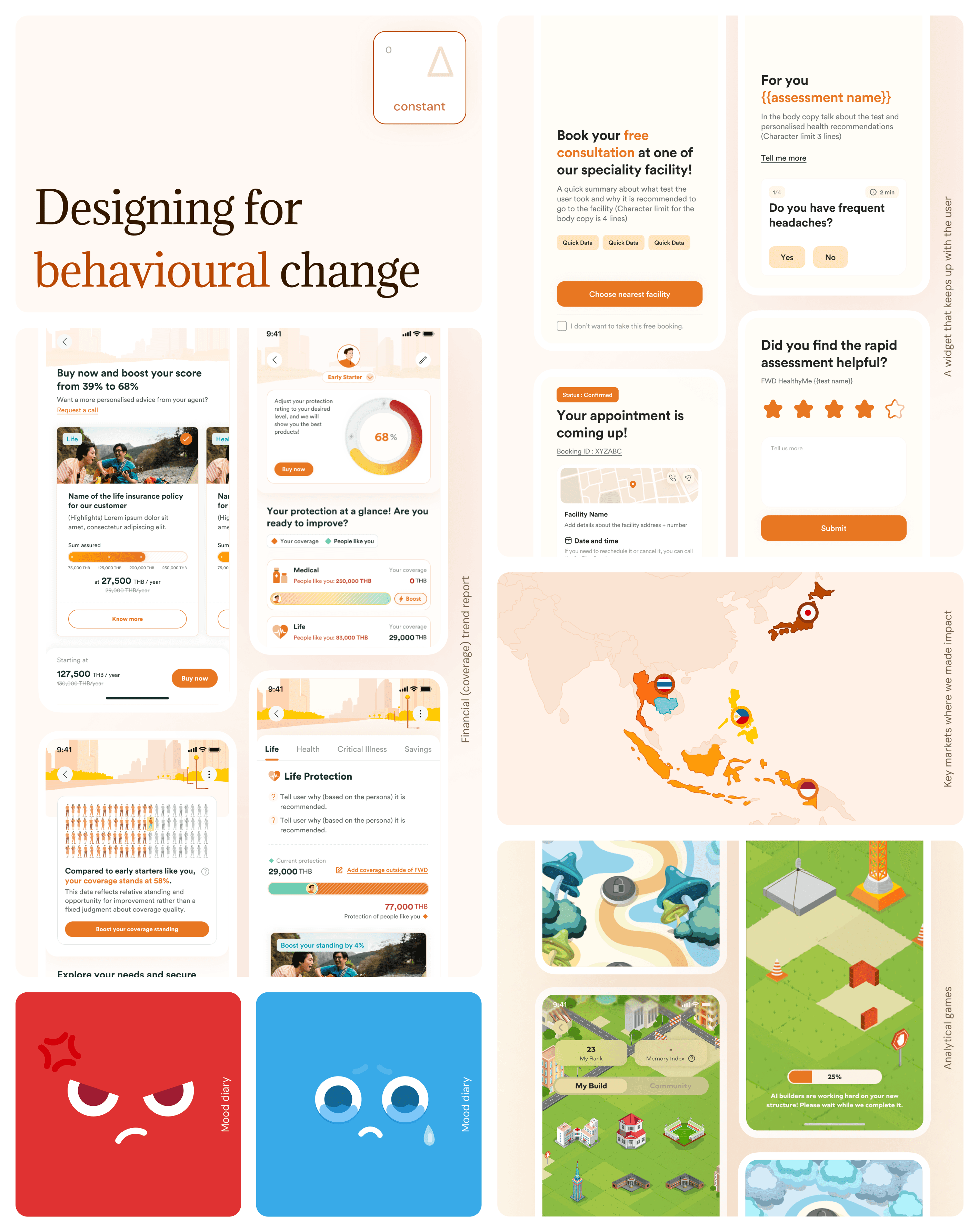 I worked on understanding design localisation for Japan. I also strategised positioning and built POCs from scratch for healthcare and financial calculator products.